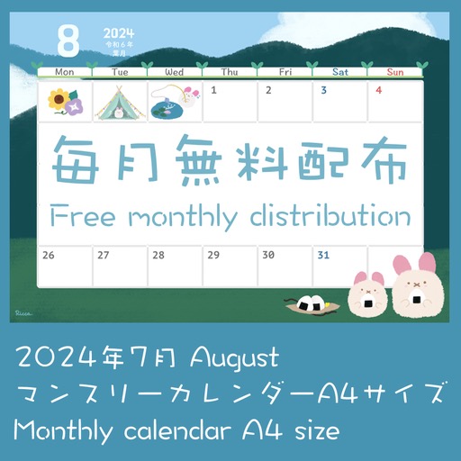 OtherSelling[Free distribution] Monthly calendar August A4 size.