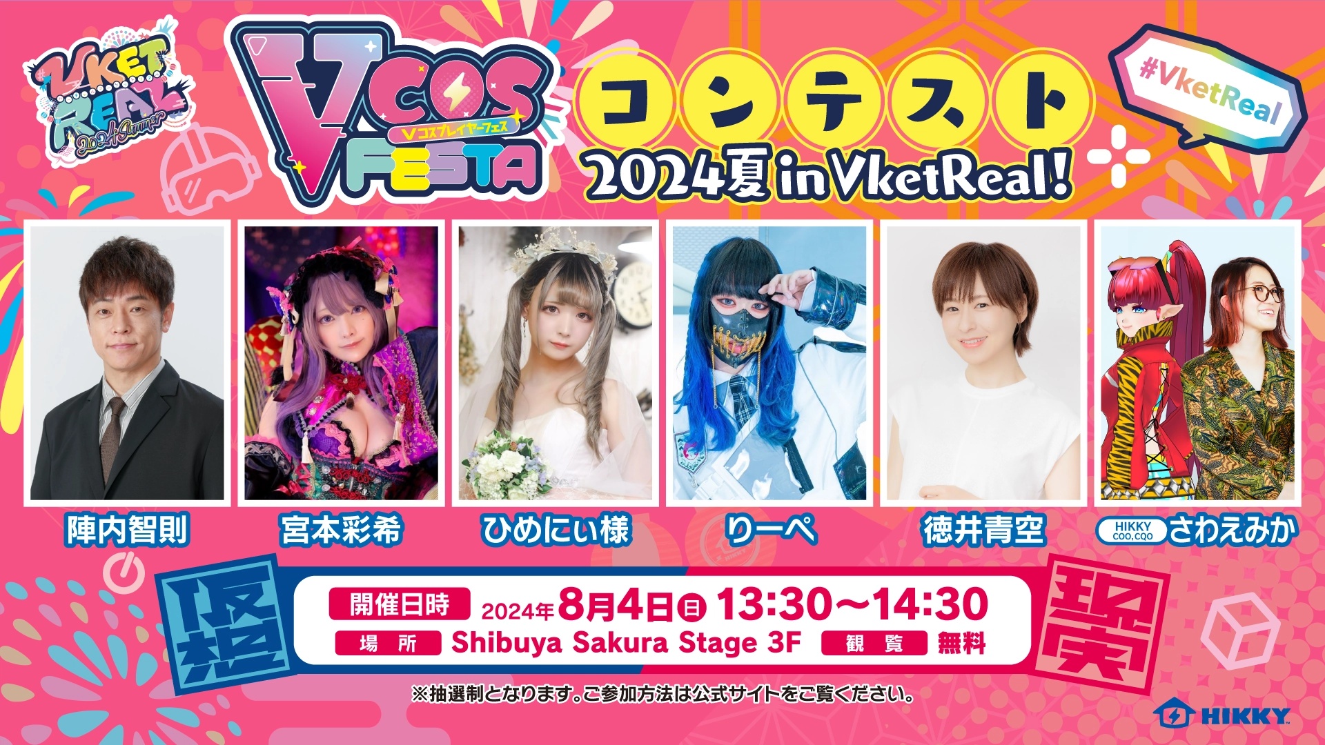 この夏はメタバースをテーマにしたコスプレコンテスト、題して「"V"コスプレイヤーコンテスト 2024夏 in VketReal!」を開催!コンテストにご応募いただいた作品の中から、2024年8月4日(日)に行われるステージイベントにて<審査員賞>や<特別賞>などを決めて、表彰をさせていただきます!