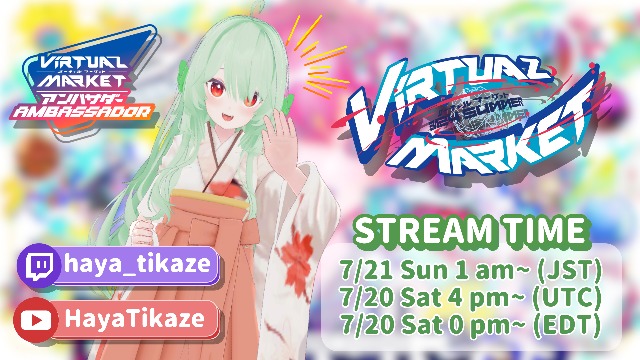 Global Virtual Market Ambassador Nyaru (nyaruchuuu) will be exploring all Parareal Worlds for a solo stream! Come explore and learn secrets behind Virtual Market 2024 Summer!