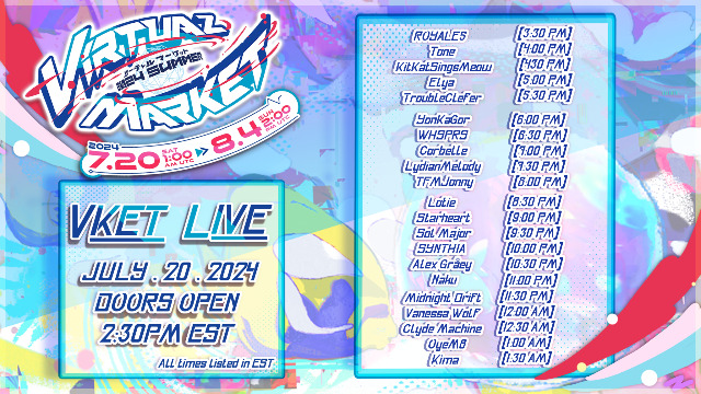 10-hours of music featuring some of most famous idols across VRChat, YouTube and Twitch followed by a DJ afterparty! Let's go live with VKET Live!